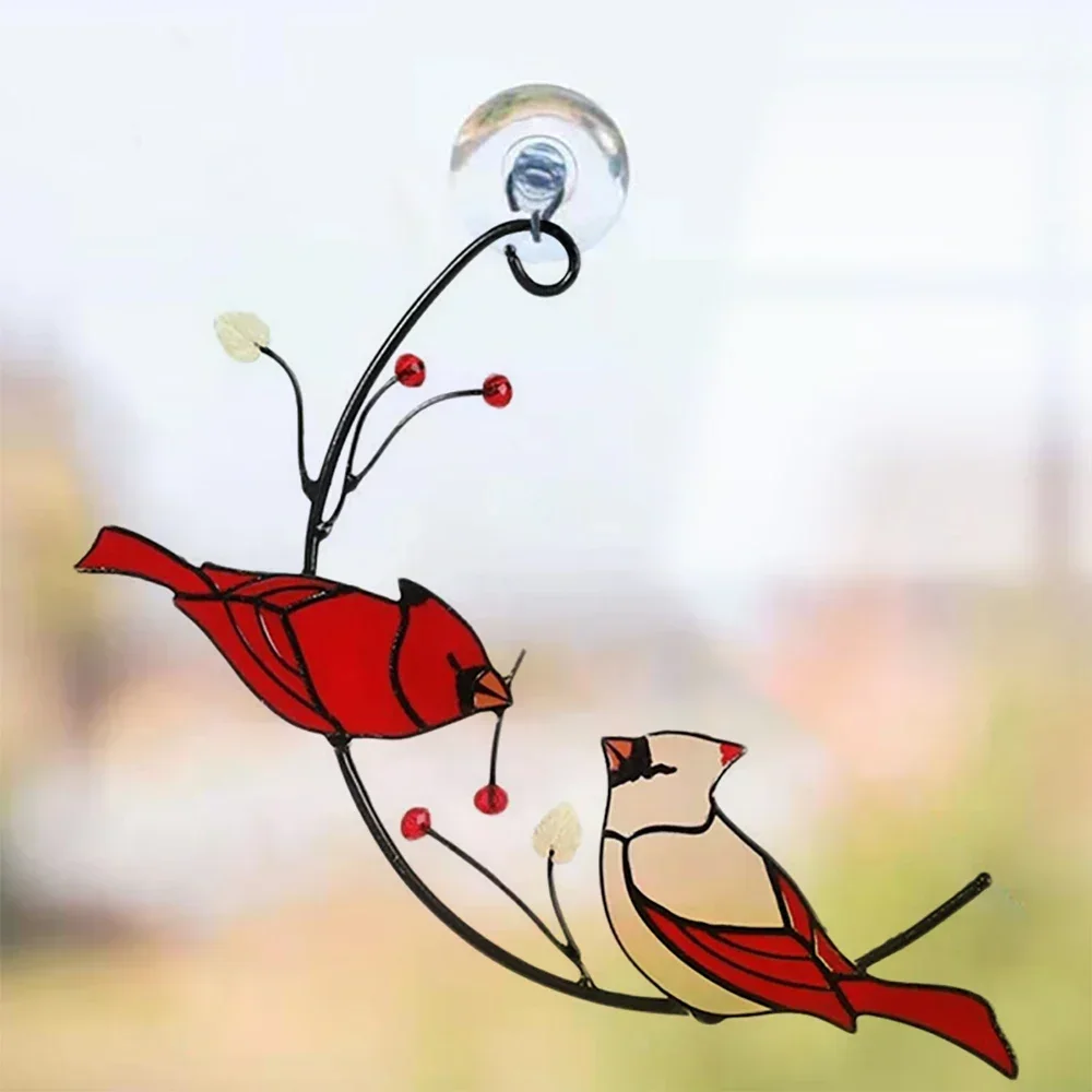 Cardinal Birds Stained Window Panel Hangings Birds Hanging On A Wire On Branch Room Decoration Accessories For Mother’s Day Gift
